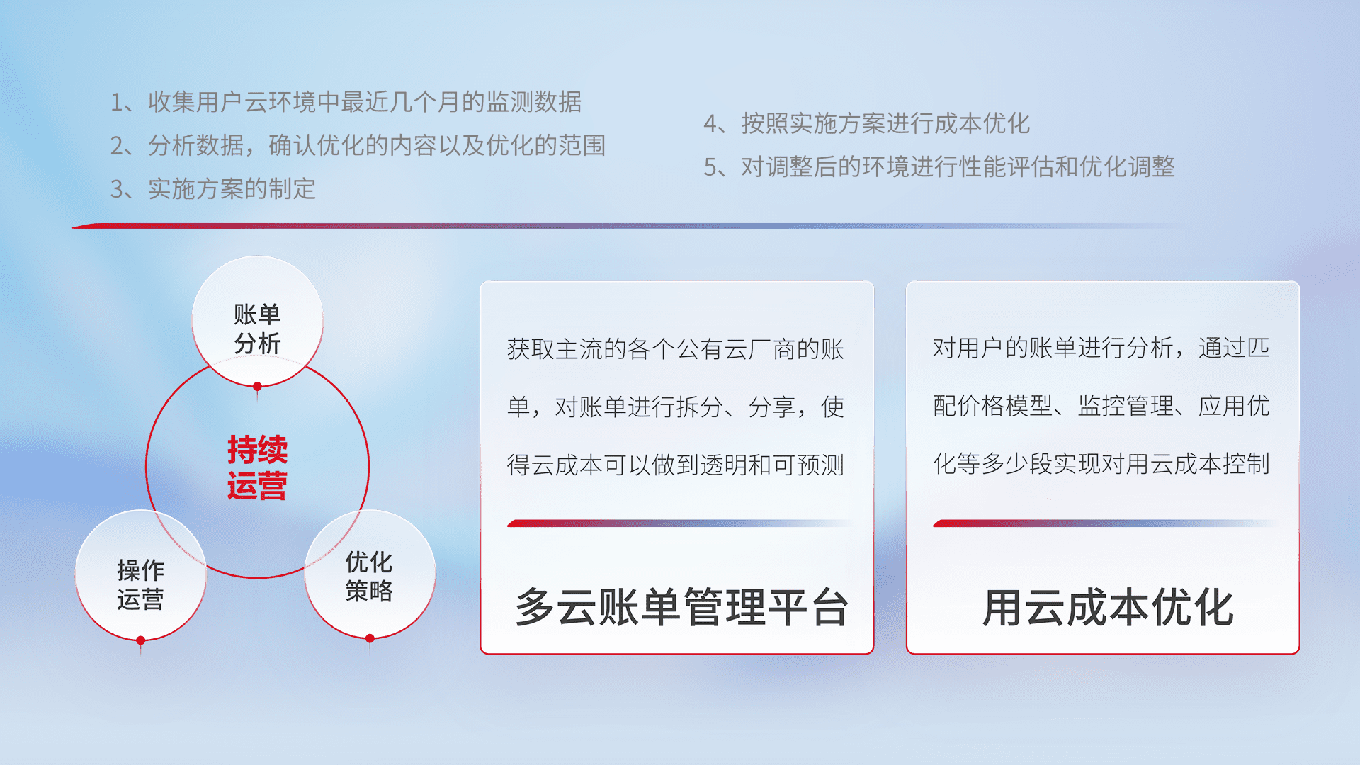 监控业务系统资源开销,,,对资源的消耗精确计量,,,,实现费用的透明化管理,,不断提升资源使用率,,,,调整资源购买方式,,,,降低资源费用成本,,用云成本可预测、、用云费用可优化,,云资源配额有据可依。。